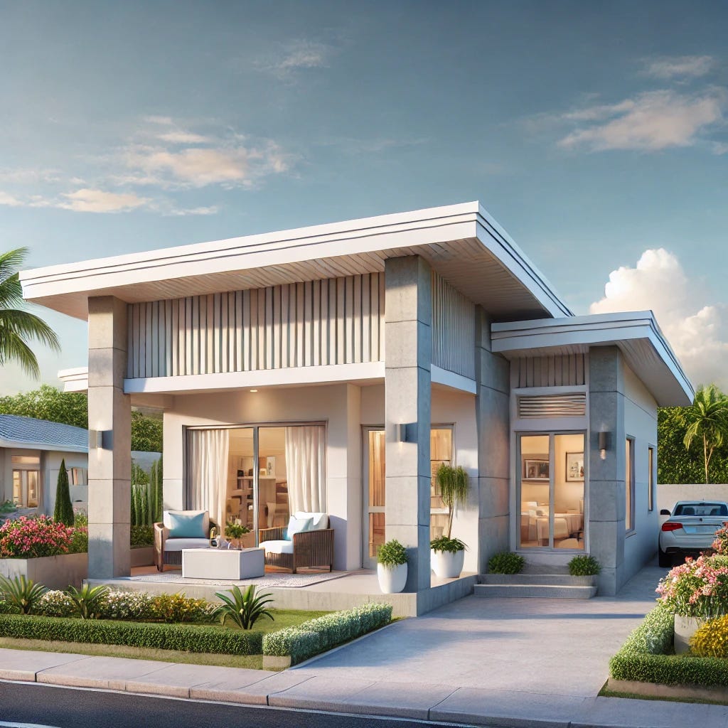 The Caribbean Breeze Residence is a modern 2-bedroom home designed for tropical climates like Jamaica and the Caribbean. It balances functionality, durability, and sustainability while providing a stylish, comfortable living space. The design features hurricane-resistant construction, natural ventilation, and eco-friendly elements for energy efficiency.