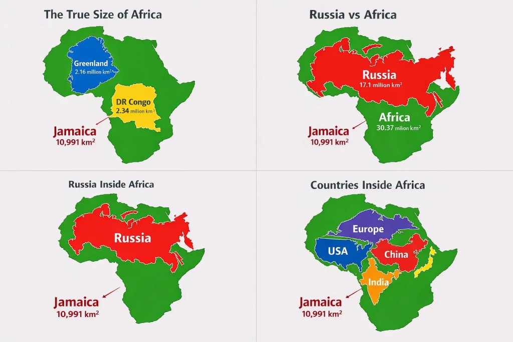For generations, Jamaicans — like most people — have grown up seeing maps where Africa appears only slightly larger than Greenland, not much bigger than Europe, and sometimes seemingly comparable to North America. Those images quietly shape perception. They tell an unspoken story about power, importance, and rel…